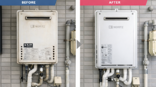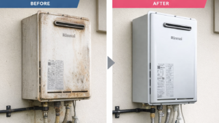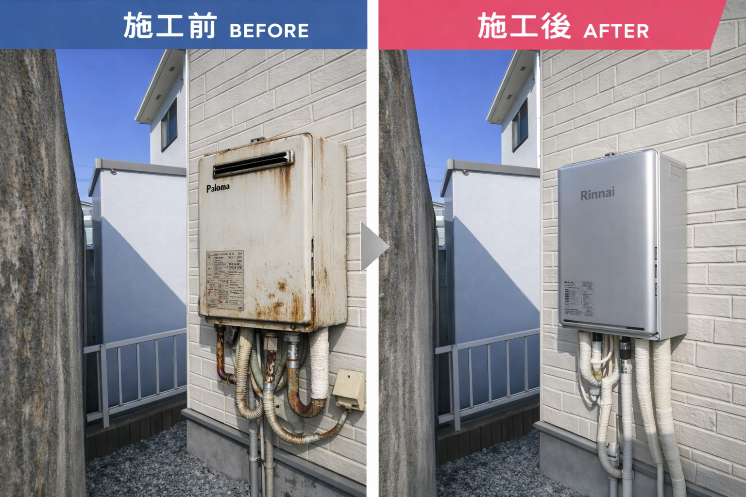 既存設備と同等能力のリンナイ製24号給湯器へ交換し、